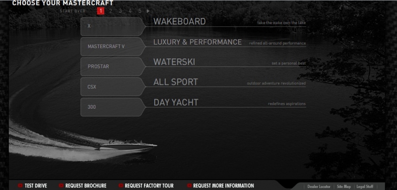 Наконец-то компания Mastercraft ранжировала свои модели на сайте mastercraft.com.
