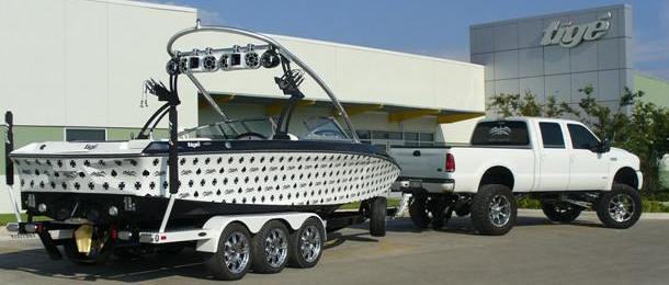 Во-первых, основной цвет прицепа должен обязательно соответствовать цвету катера; во-вторых, самая низкопрофильная резина и самые большие 18-ти дюймовые диски должны быть опорой вашего любимого катера; в-третьих, в отделке должно быть много нержавейки и алюминия; и, наконец, он должен светиться ночью логотипами производителя и светодиодными лампами. Видео.