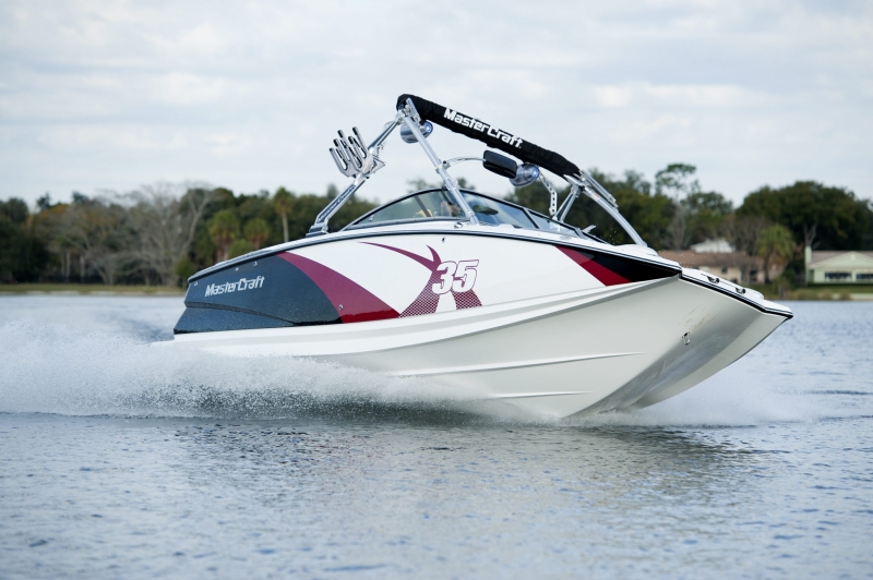 Mastercraft X35 имеет глубокий массивный киль, этот катер наделен отличными мореходными качествами и предназначен для больших открытых водоемов. Такое строение корпуса обеспечивает катеру MasterCraft X-35 плавный ход даже на разбитой воде. Широкий корпус – 2,6 м. с двуносым килем может разместить на своих глубоких сиденьях до 16 пассажиров. Длина корпуса Mastercraft X35 7,12 м. В салоне сиденье –трансформер, под которым разместился объемный холодильник. Mastercraft X35 обеспечит высочайший уровень комфорта для вашего отдыха на воде.