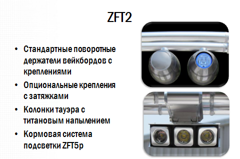 Новый упрощенный полуавтоматический складной тауэр ZFT2, который теперь доступен опционально на многих моделях, в стандартной комплектации тауэра поворотные держатели вейкбордов с резиновыми фиксаторами: