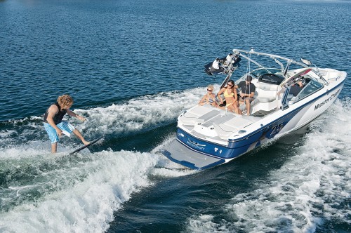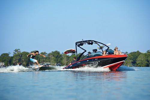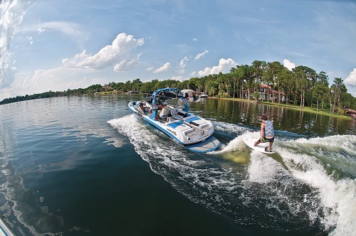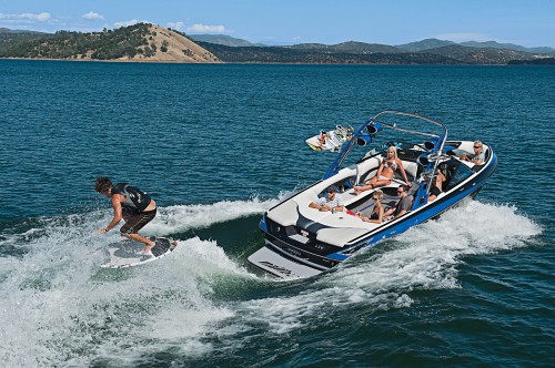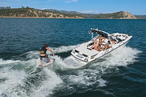 Как его использовать для серфинга по максимуму: заполнить центральный и правый балласт полностью, оставляя кормовые и носовые емкости пустыми. Затем добавить дополнительный балласт на правую сторону кормы корпуса и посадить пассажиров на правый борт. Чтобы сделать волну выше, нужно полностью опустить вниз плуг системы регулировки волны Malibu Power Wedge.