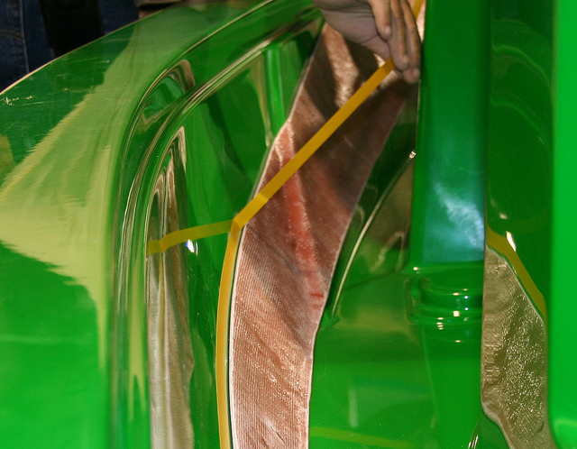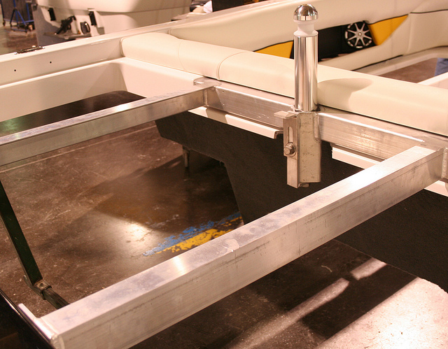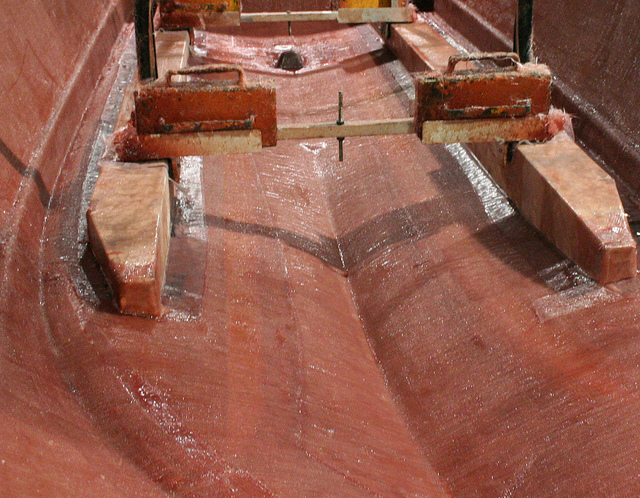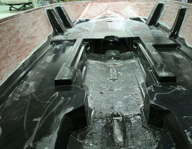 После окончания процесса накатки стеклоткани, в корпус вклеивают силовые элементы и опоры для сочленения с палубой: