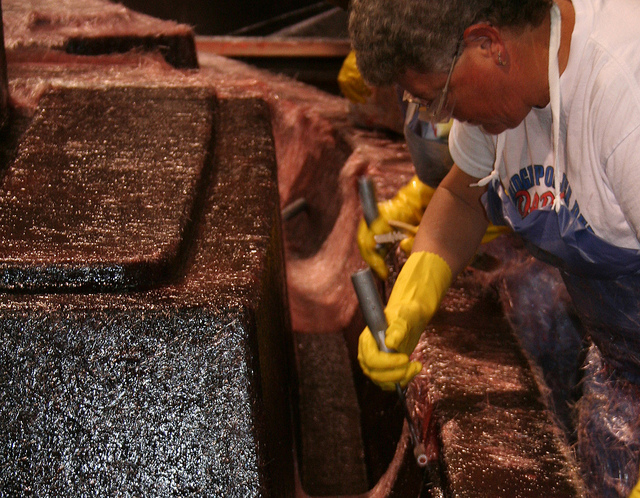 Для начала, рабочие начинают подготавливать форму к заливке корпуса, их основная задача - добиться идеальной чистоты формы: