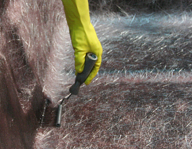 После нанесения гелькоута на форму, начинается самый трудоемкий процесс в производстве корпуса - накатка стеклоткани. Это вредное, трудоемкое производство, на всех заводах устанавливают мощные системы вентиляции, но это не защищает рабочих от вдыхания вредных испарений. Первым слоем на гелькоут наносится специальная смола, затем укладываются предварительно раскроенные из стеклоткани различной толщины и конфигурации детали корпуса катера, а затем процесс многократно повторяется, пока толщина корпуса не достигнет необходимого значения: