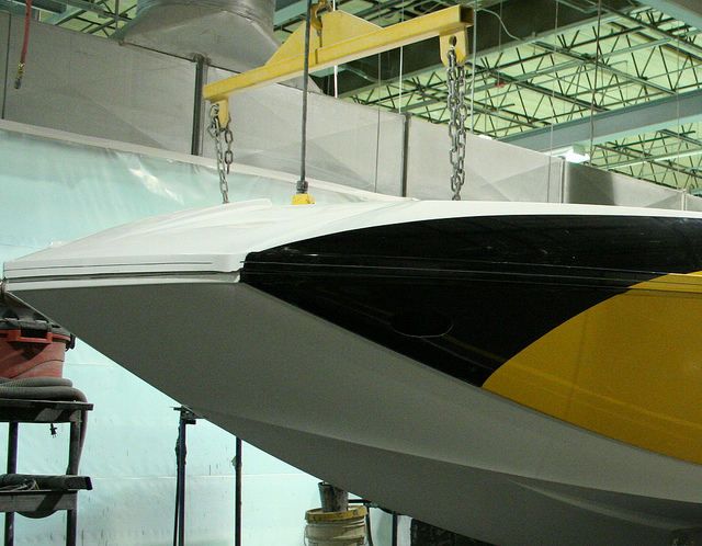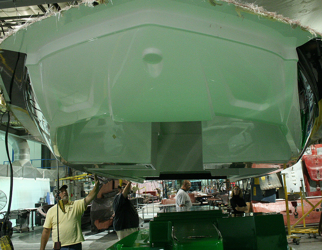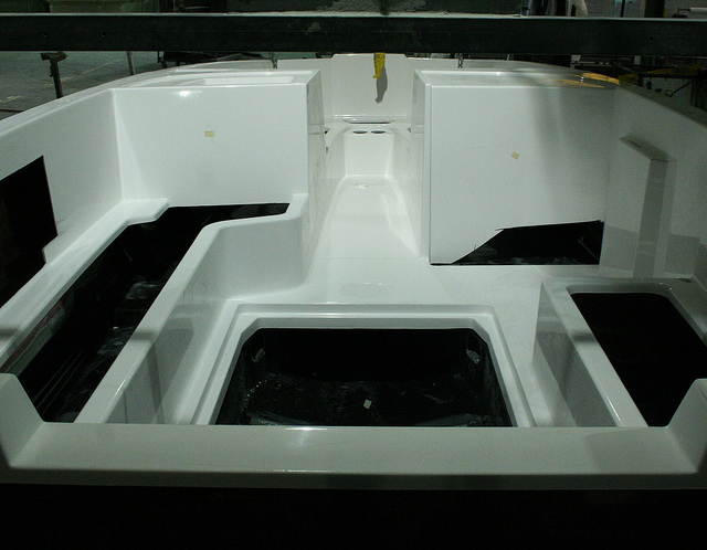 В свою очередь, производство корпуса также можно разделить на два этапа: производство собственно корпуса катера (подводная часть и борта) и производство палубы (для непосвященных - верха катера, куда входит салон, верх борта и верх моторного отсека).