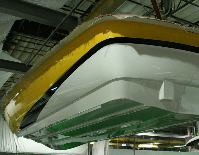 По краю корпуса видна затвердевшая стеклоткань, которая выступала за форму корпуса, ее затем отрежути зачистят для соединения с палубой: