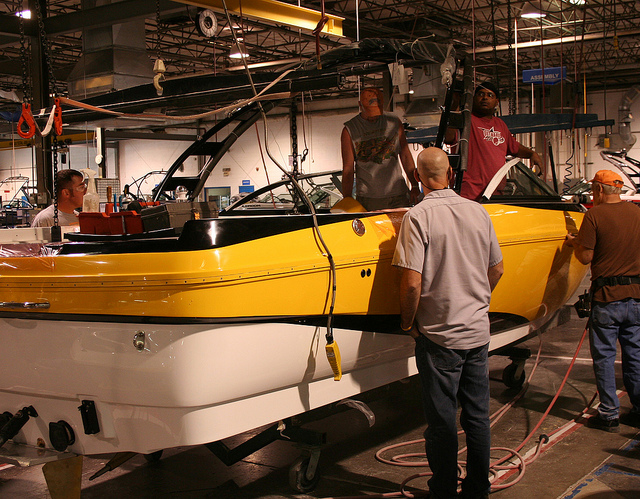 Производство катера, в том числе катера-буксировщика, можно разбить на два основных этапа - это производство корпуса катера и установка на готовый корпус всех аксессуаров (если можно к таковым отнести двигатель).