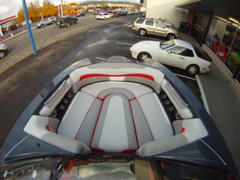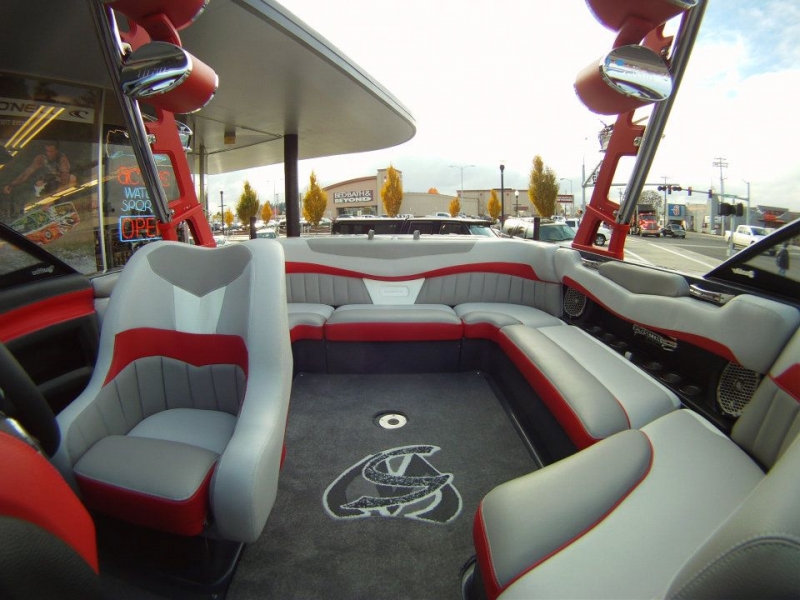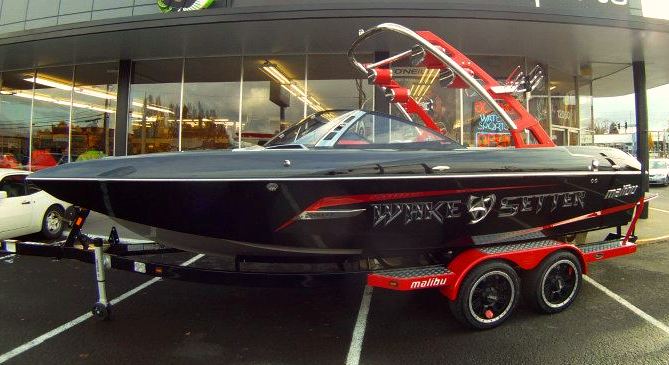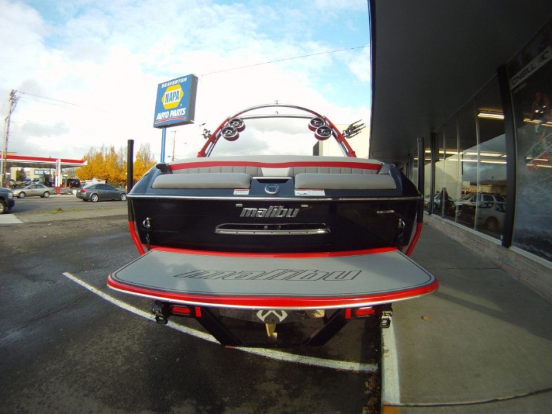 Если смотреть на этот буксировщик сбоку, ничто не выдает двуносую компоновку корпуса, инженеры Malibu Boats создали очень гармоничный корпус. На суше корма этой лодки смотрится несколько громоздко, зато на воде - это одна из самых красивых лодок в индустрии.
