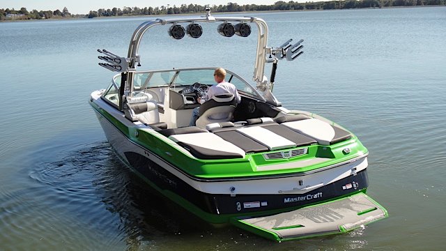 С первого взгляда виден характерный корпус, как на новом Mastercraft X-Star, и корма более резкая. Лодка позиционируется производителем как универсальная. Из радикальных изменений - проход над кормовым отсеком, дополнительная ступенька на транце, новая панель приборов и складной тауэр.