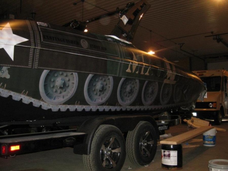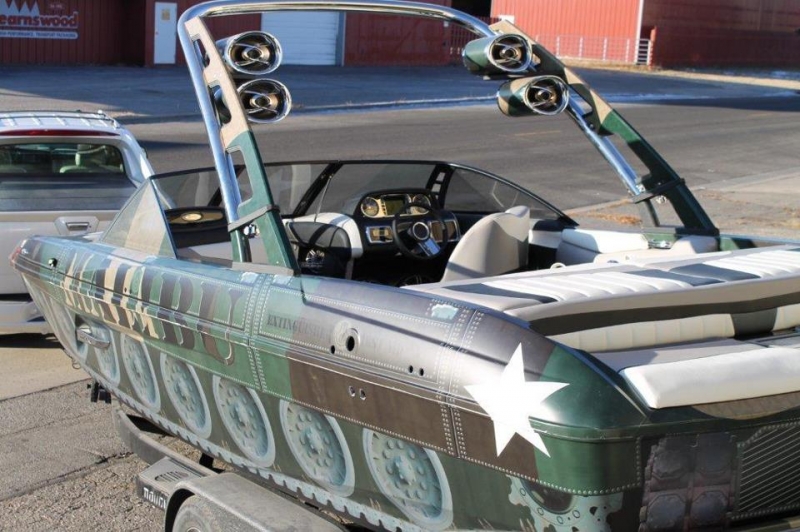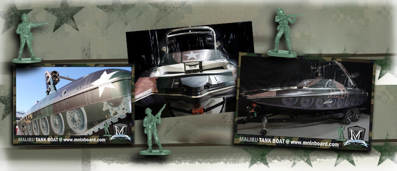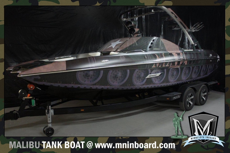 Дилер Malibu Boats, компания Minnesota Inboard Water Sports, в сотрудничестве с компанией Ultimate Boat Wraps (специализируется на тюнинге лодок) к своему 20-ти летию и бот-шоу в Миннеаполисе создали новую модификацию Malibu Wakesetter MXZ - Malibu MXZ TANK Edition. Это самое лучшее воплощение самых смелых мальчишеских фантазий!