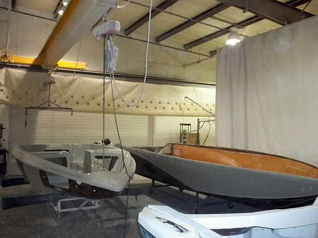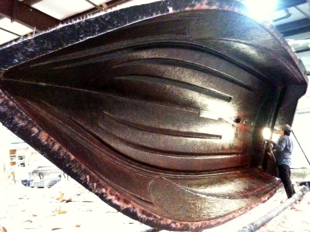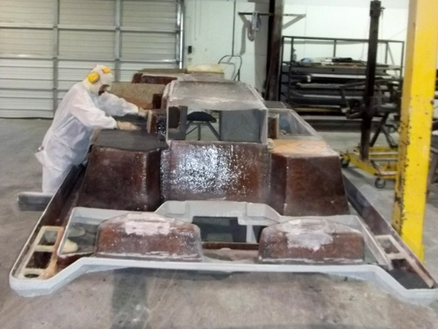 Начало пути: подготовка форм для нанесения гелькоута, перед началом процесса формы обрабатывают воском. Каждая лодка строится снаружи-вовнутрь, поэтому сначала в форму заливают гелькоут (внешнее покрытие корпуса):