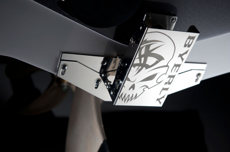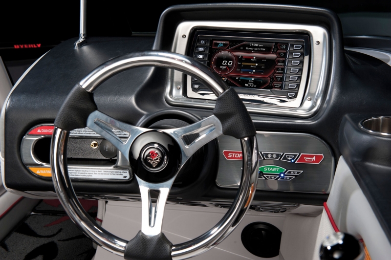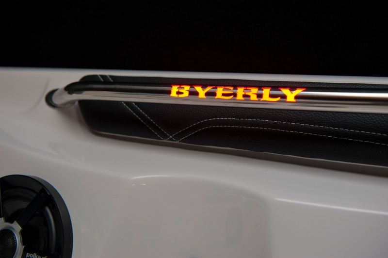В дизайне Byerly Icon Edition прекрасно сочетается черный оникс, серый, красный металлик и много хрома. Одного взгляда на любую деталь достаточно, чтобы оценить качество исполнения этой лодки. На многих элементах салона и панели приборов красуется клеймо Byerly. Оно вышито на палубном ковре и сиденьях, и даже на тиковой степ-платформе вы увидите имя Byerly.