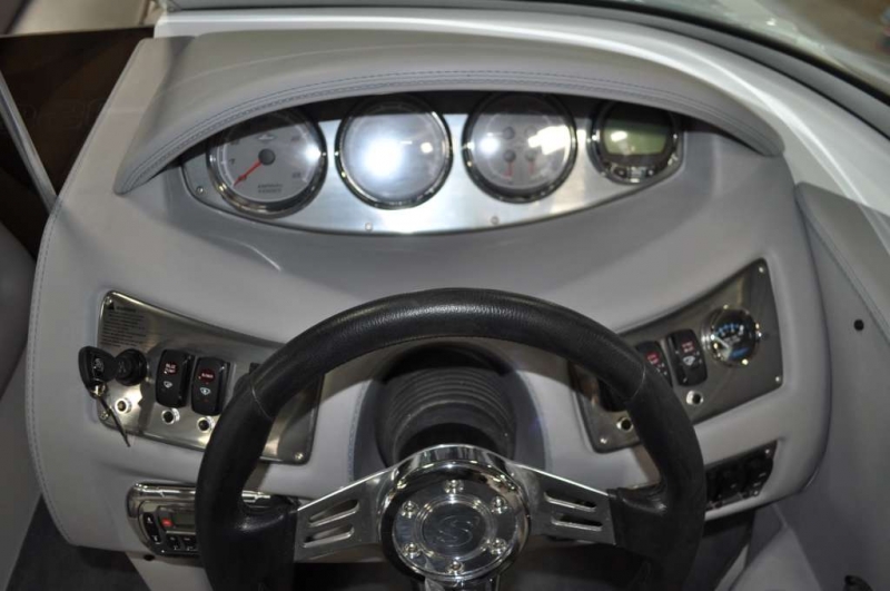 Рабочее место водителя и панель приборов оформлены слишком просто для катера такой категории