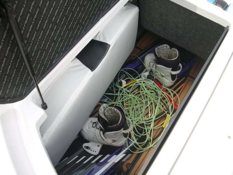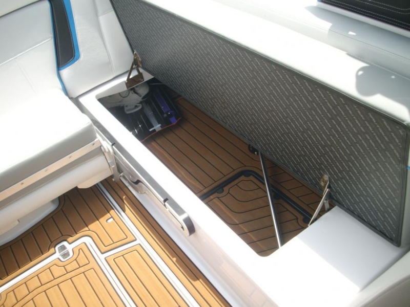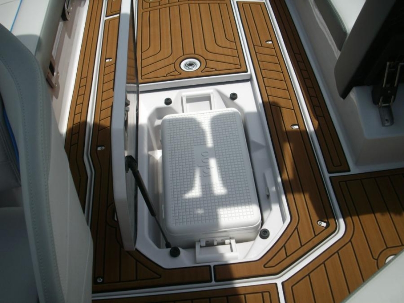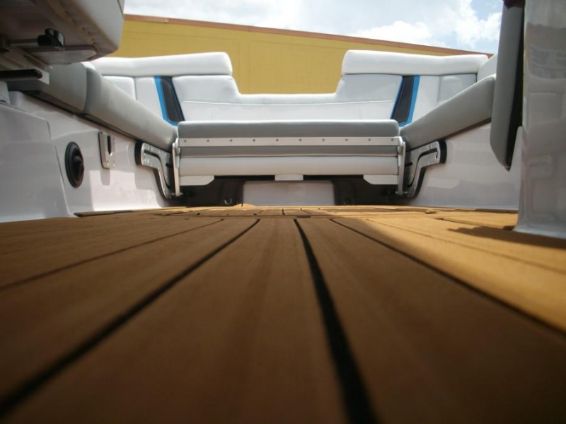 Палуба вместительного салона, проход над моторным отсеком и все внутренние горизонтальные поверхности отсеков для хранения снаряжения покрыты нескользящим покрытием - искусственным тиком