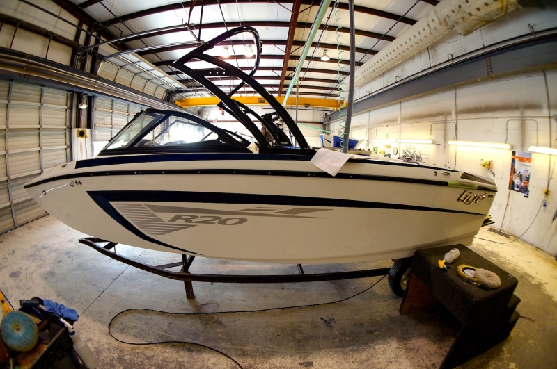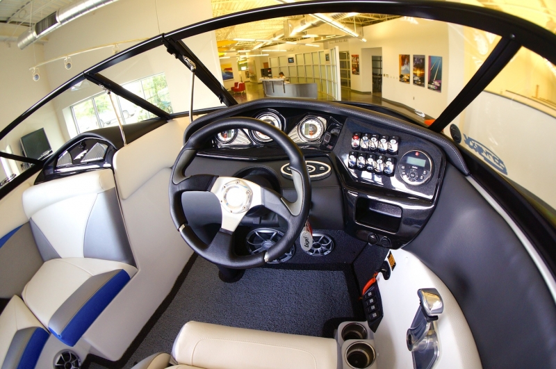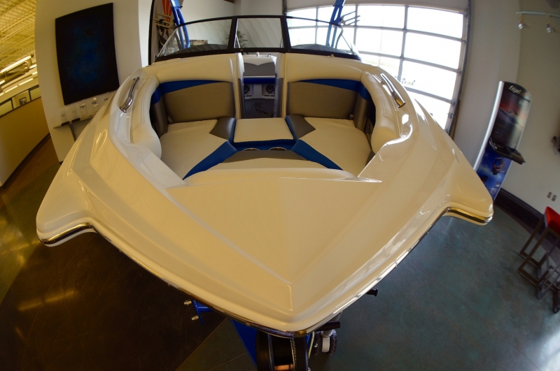 Цвет корпуса этого катера - серый металлик, очень эффектно смотрится с ярко-голубым. Тауэр - опциональный Tige EVO