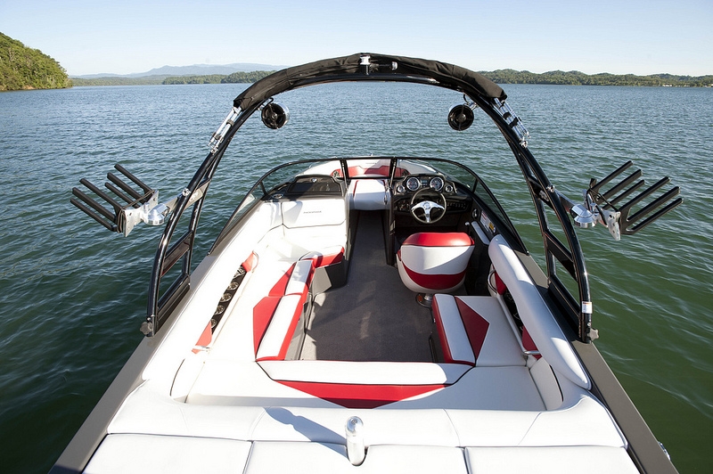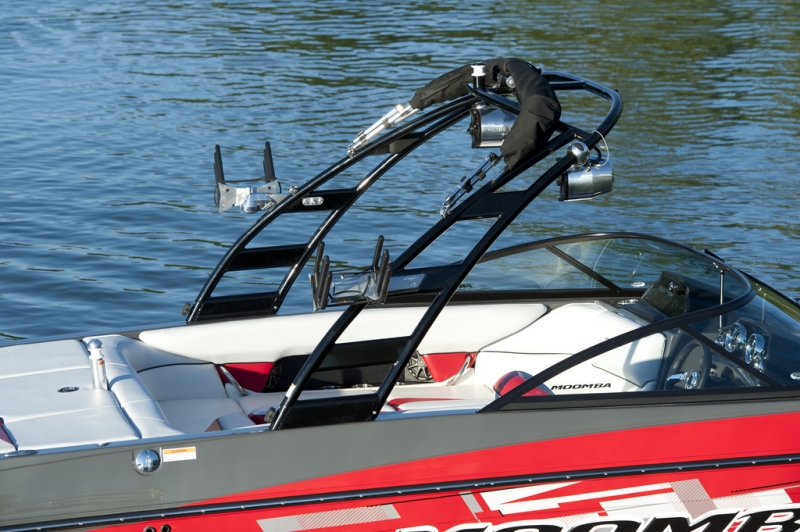 С 2013 года на катер устанавливают новый тауэр Moomba Oz. Выглядит он спорно, зато входит в стандартную комплектацию. Напоминаем, в стандартную комплектацию Moomba Mobius LSV входят: тауэр, система круиз-контроля, балластная система начального уровня, стерео-система начального уровня и система регулировки волны.