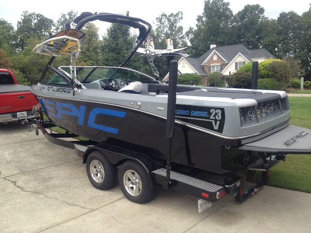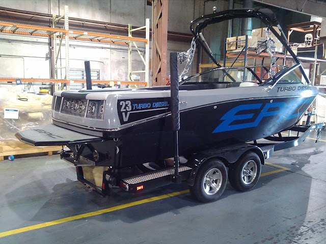На прошлой выставке SURF EXPO стоял скромный стенд дизельных двигателей Hyundai с демо-катером Malibu VLX. Стенд особого ажиотажа не вызвал и возле него особо никто не толпился. Тем не менее прошел почти год и мы видим - старый новый Epic 23V с новым дизельным сердцем. Компания продолжает экспериментировать, главное, чтобы у производителя Epic Boats хватило средств на все проекты. По заверениям сотрудников Hyundai расход этого двигателя в смешанном режиме буксировки - 17 литров в час. Подробности - через неделю.