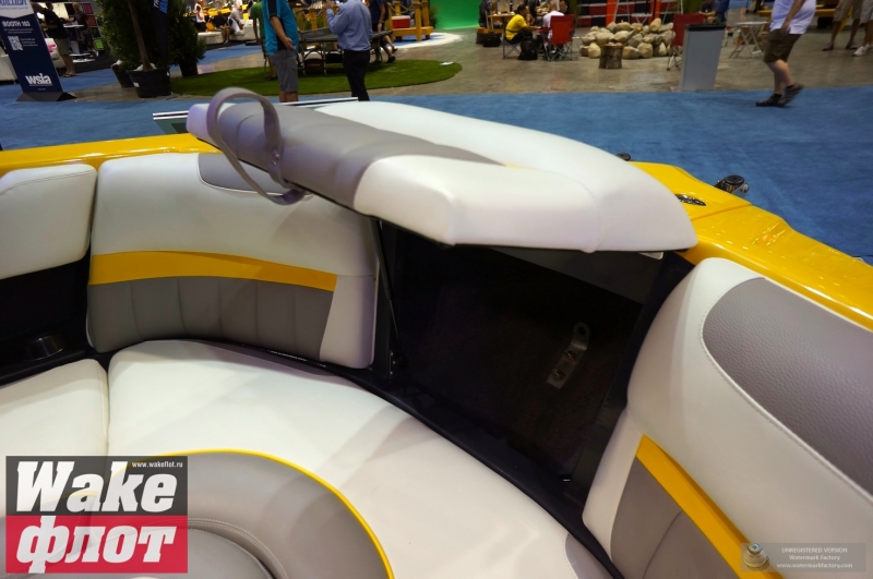 Небольшие кормовые сиденья с невысокими мягкими спинками. Под ними расположены отсеки для хранения мелочей.