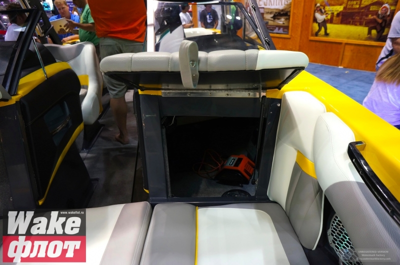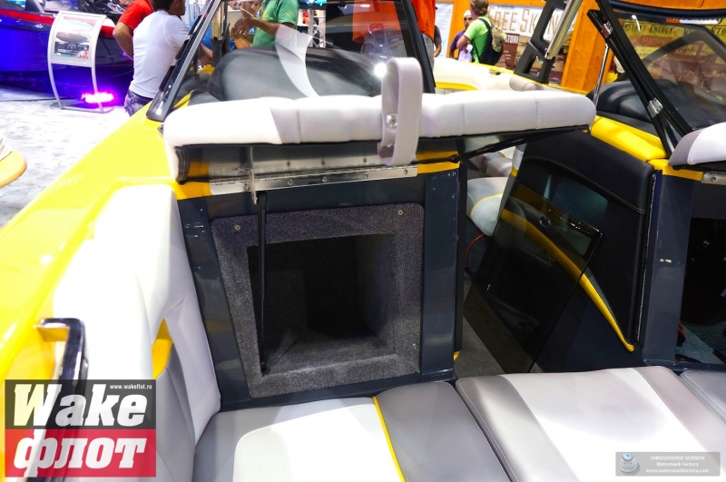 Корпус катера к корме расширяется, за счет увеличения борта инженеры Malibu спроектировали моторный отсек таким образом, что двигатель утоплен глубоко в корпус.