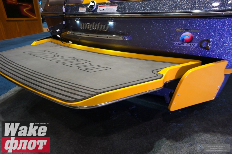 На транцевой плите предусмотрены специальные вырезы для боковых пластин системы регулировки волны Malibu Surf Gate.