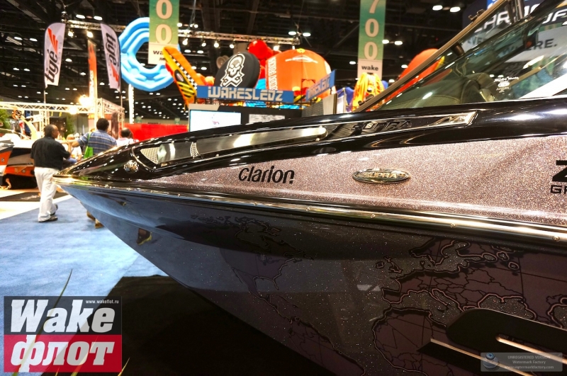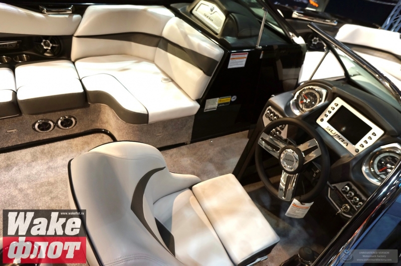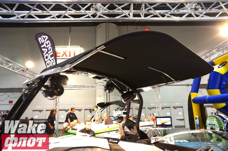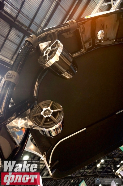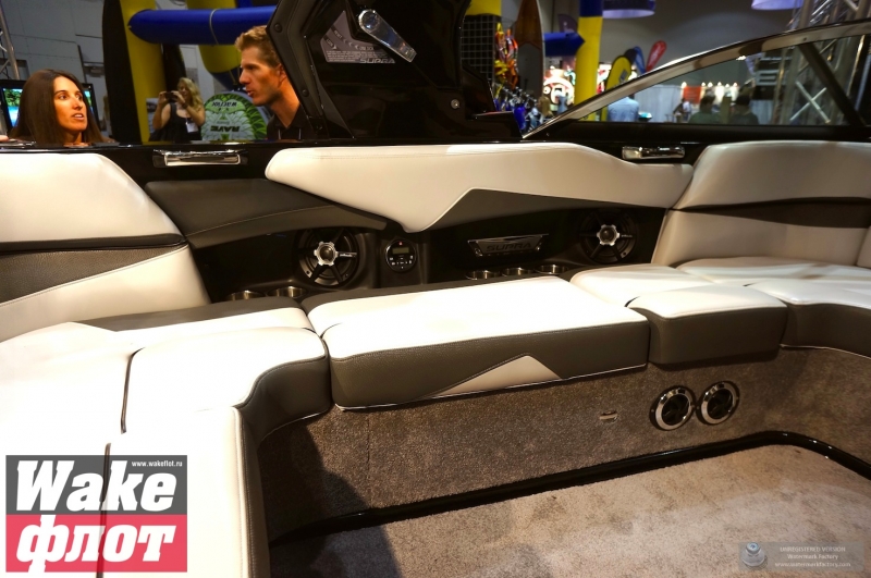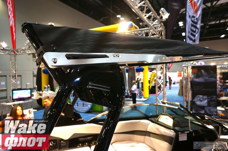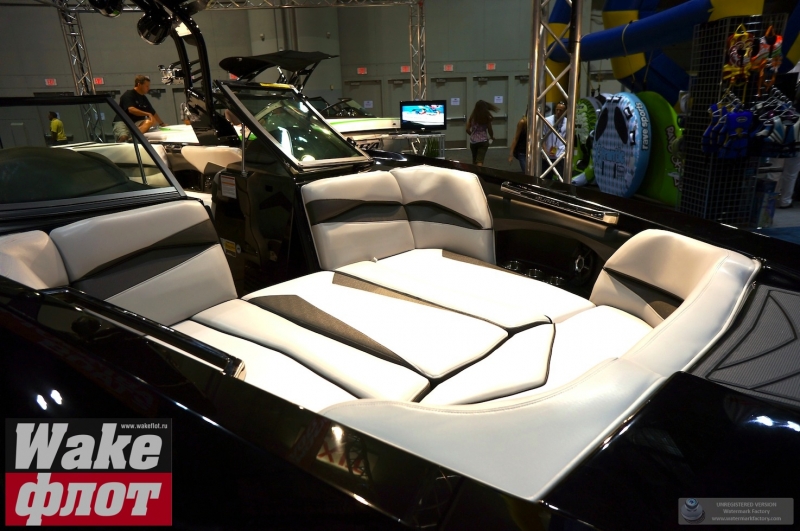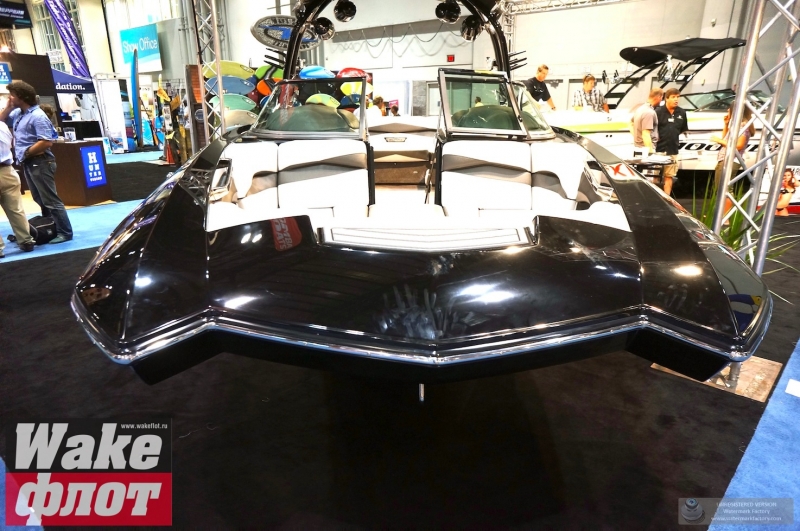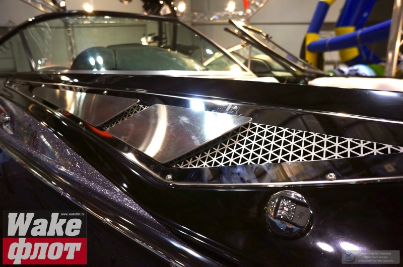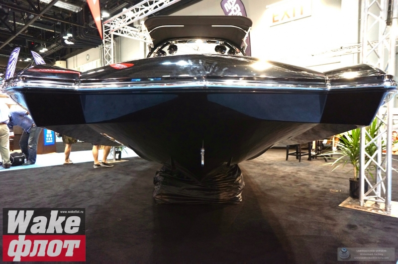 Но если вы посмотрите на подводную часть катера, он имеет цельный корпус с плавными обводами и небольшими реданами. Киль небольшой, а боковые скулы формируются уже в мощные кормовые реданы. Лодка смотрится гармонично и имеет свой стиль. Но отделаться от ощущения, что она похожа на Malibu MXZ очень сложно. Тауэр формой основания напоминает тауэр Nautique Boats. В конце концов, все лодки похожи друг на друга!
