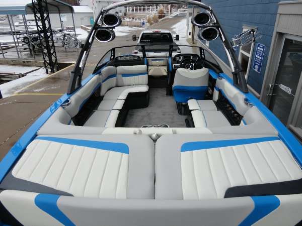 В отделке Malibu 24 MXZ много нержавеющей стали, тауэр с динамиками, опоры ветрового стекла, держатели вейкбордов и привальный брус смотрятся превосходно.