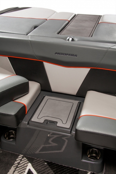 Буксировщик имеет гибридный корпус, компоновка носового отсека - нечто среднее между классической и двуносой компоновкой, это решение заимствовано у флагманской модели Moomba Mojo 2.5. За центральной спинкой скрывается дополнительный отсек для инвентаря.