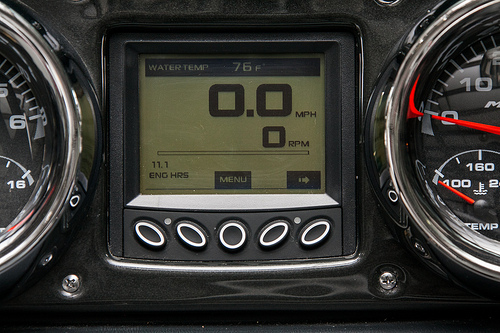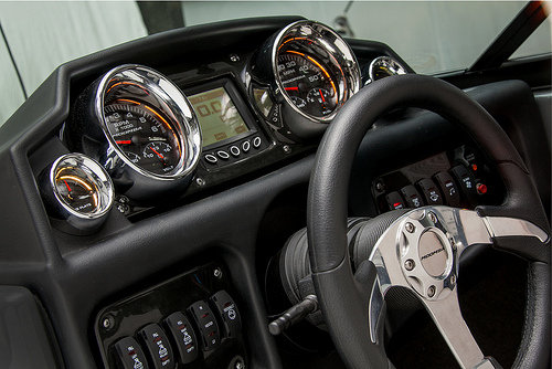 Панель приборов - производная от флагманской Moomba Mojo 2.5. Между аналоговыми спидометром и тахометром расположен монохромный дисплей со всей необходимой информацией. Отличное решение - подрулевой рычаг управления системой регулировки волны. Очень удобно.