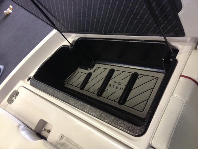 Центральный проход открывается вместе со спинкой кормового сиденья, обеспечивая удобный доступ к двигателю