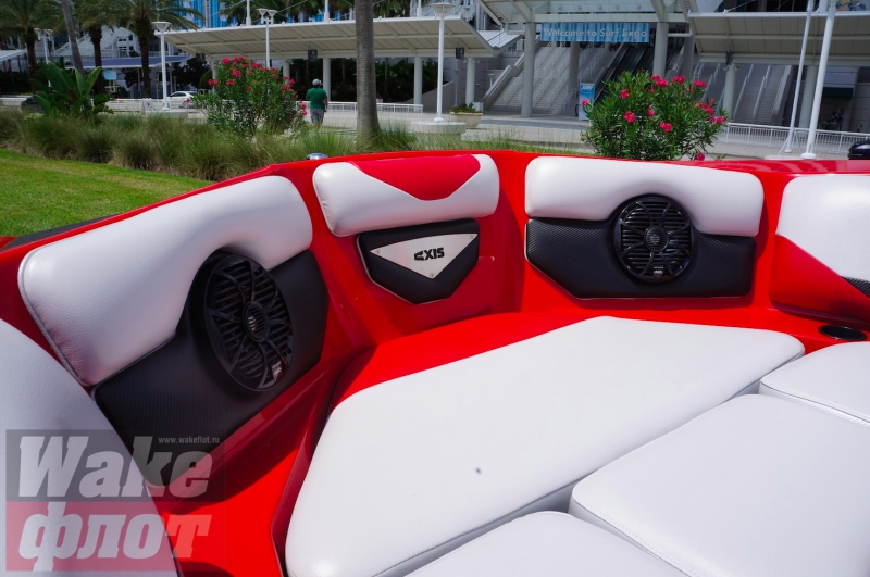Размеры Axis A24 впечатляют, причем на улице лодка стояла по соседству с Malibu 24 MXZ и казалась больше нее. Инженеры компании Axis удачно увеличили Axis A22 до 24-футового размера, корпус смотрится гармонично.
