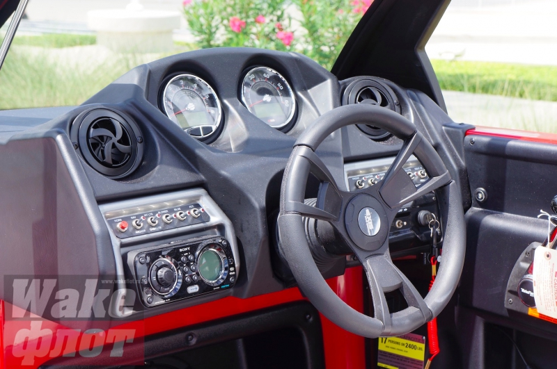 Панель приборов сделана из дешевого пластика, таким же пластиком отделан правый борт возле водительского кресла. Архаичный механизм управления дросселем производства Attwood