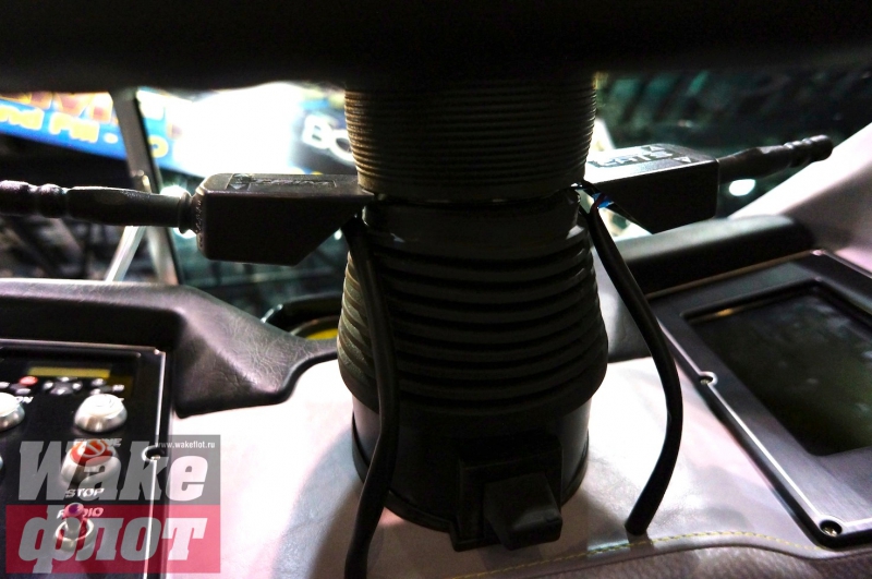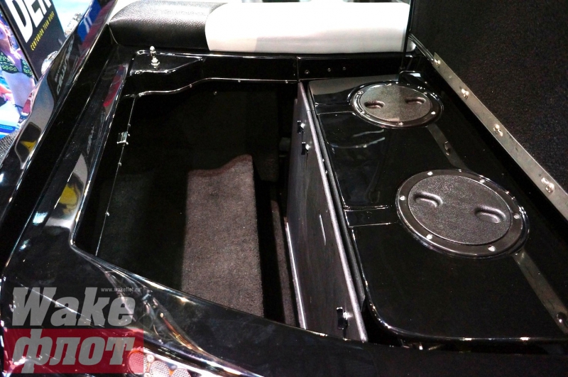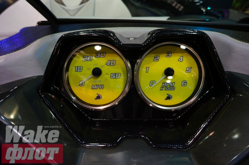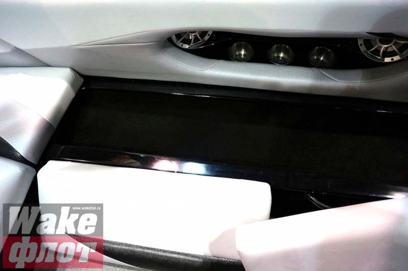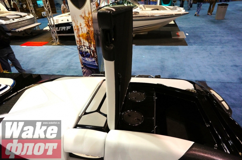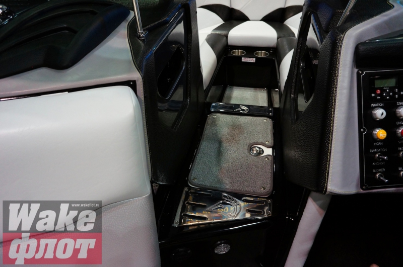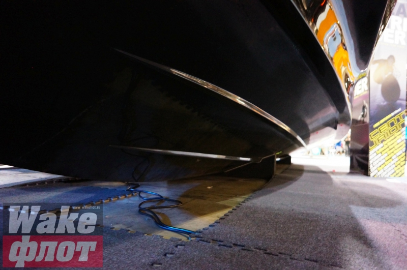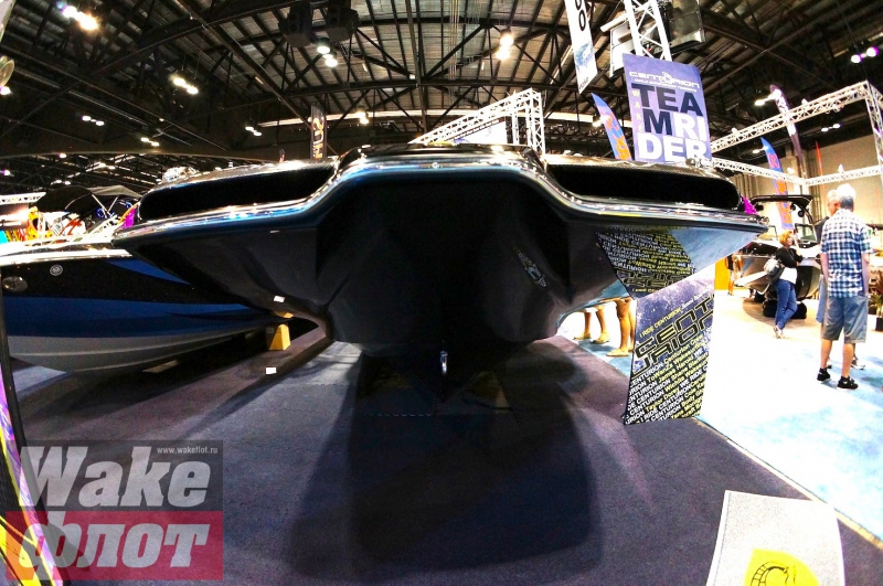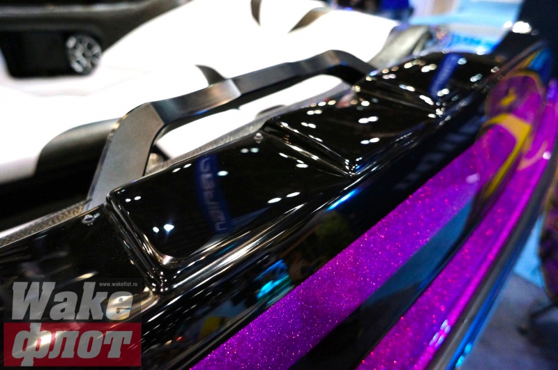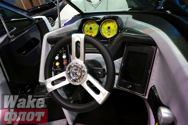 Centurion FX44 - это логичное развитие двухносой серии FX компании Centurion и серьезная заявка на топ лучших буксировщиков планеты. Необычная форма корпуса, где борт имеет мощный редан, формирующий волну и плоский широкий нос, эта лодка необычна не только снаружи. Новая кормовая балластная система RAMFILL заполняется на ходу за 30 секунд, да и новая панель управления необычно выглядит. Кстати, представленная модель черного цвета с вставками фиолетового металлика смотрится весьма эффектно.