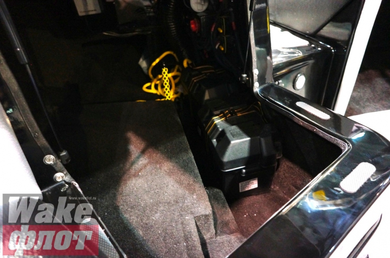 Аккумуляторы расположены в левом отсеке, под ветровым стеклом, слева виден короб балластной системы RAMFILL, который проходит под всеми бортовыми сиденьями салона