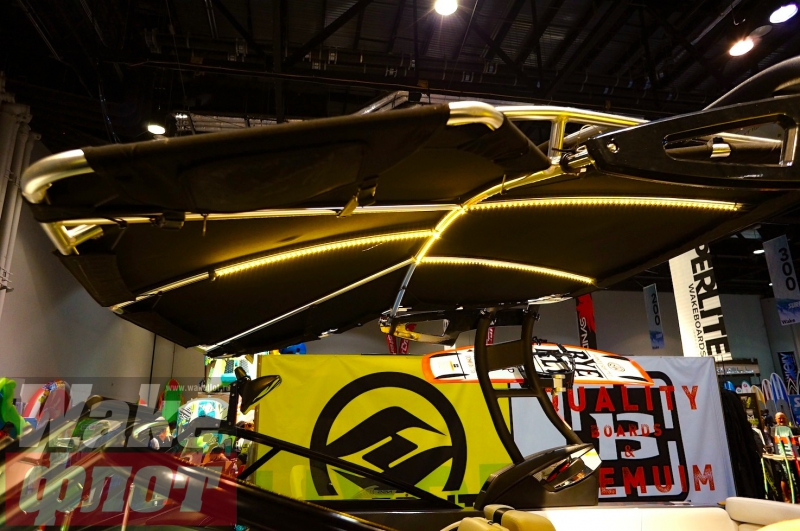Ходовой тент с жестким каркасом, позаимствован инженерами Nautique у компании Supra Boats