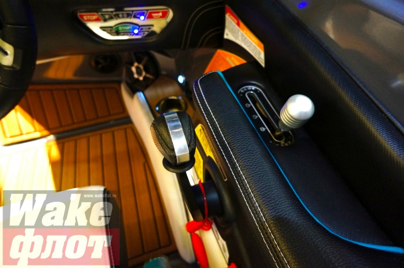 Удобная широка полочка под правую руку водителя имеет рычаг регулировки системы управления волной