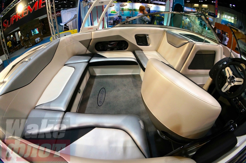 К сожалению, новая лодка стала компиляцией прошлогодних разработок конкурентов и это не лучший путь развития для Supreme. Нижняя форма корпуса позаимствована у Malibu Boats, носовая часть у Supra, кормовая часть досталась от материнской Supreme v226. Салон никак не отличается от Supreme v226.