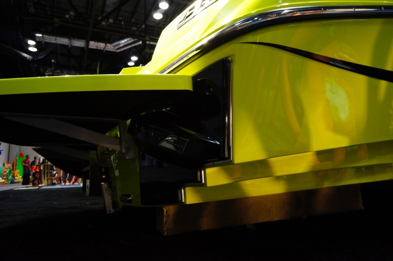 Примерно с середины корпуса к корме расположены боковые ступенчатые реданы, ширина которых увеличиваются к корме. Как планируют проектировщики - это увеличит курсовую устойчивость и эффективность системы регулировки волны NSS. Пластины системы NSS также увеличились в размере и это, безусловно, скажется на росте расхода топлива.